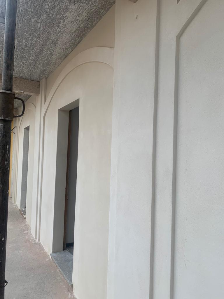 Rasatura armata con finitura al civile con rasante cementizio e tinteggiatura silossanica.